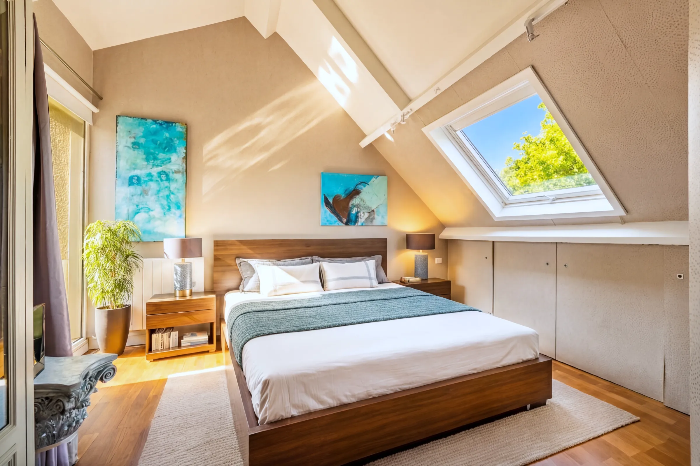 Située dans un environnement résidentiel calme et prisé, à proximité immédiate du Golf de Fourqueux et du Lycée International de Saint-Germain-en-Laye, cette maison d’architecte de 350m2 au sol, rénovée avec des matériaux de qualité, conjugue modernité, confort et qualité de vie. Une pompe à chaleur réversible tout récemment installée apporte confort en toute saison et maitrise des performances énergétiques.